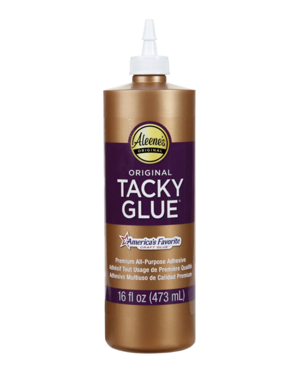 Aleene’s all purpose tacky glue comes in a 16.oz bottle (472ml) dries clear & flexible.